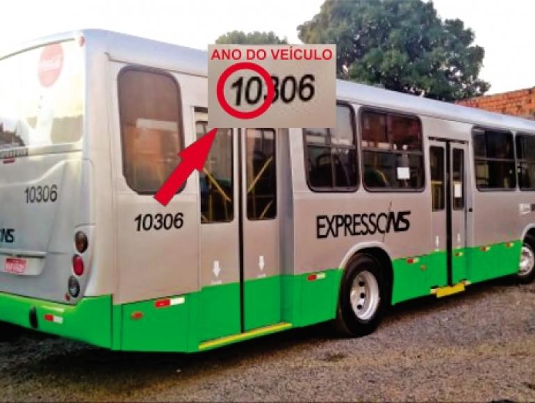 Ônibus da empresa Norte Sul que foi autorizado pela Semob a  rodar na região Norte. No detalhe, numeração do veículo aponta o ano de fabricação (2010)