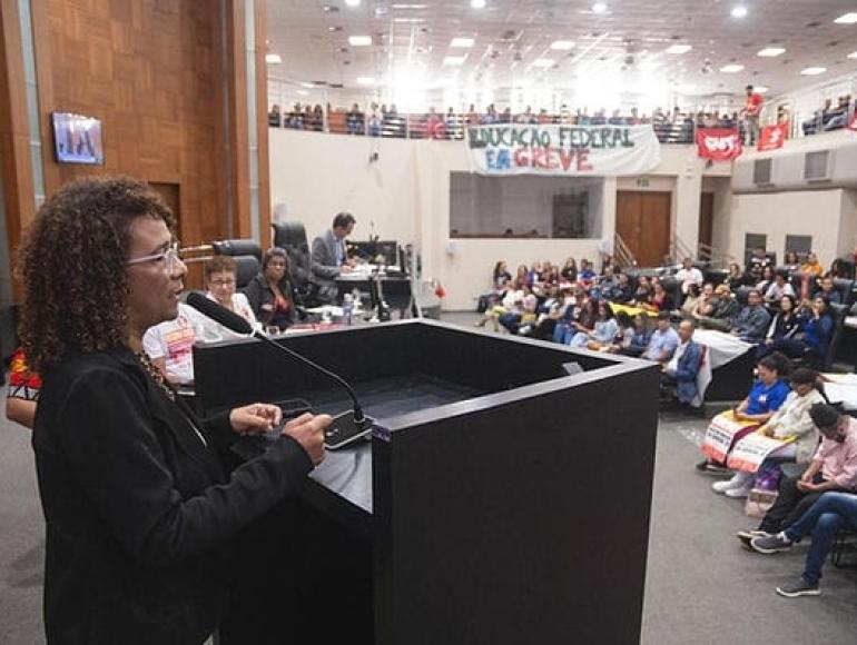 "Testemunhei muitos momentos em que ocupamos este plenário e galerias, lutando pela visibilidade do que é essencial em nossa sociedade: a universidade, um polo de produção de ciência e tecnologia no Brasil. A produção de conhecimento para a emancipação humana é liderada pelas instituições públicas, resultado de muita luta ao longo da história", reiterou.