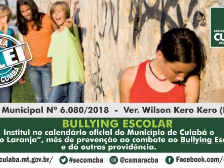 Lei de autoria do vereador Wilson Kero Kero (PSL) instituiu no calendário oficial do município de Cuiabá o “Março Laranja” de prevenção e combate ao bullying nas escolas.