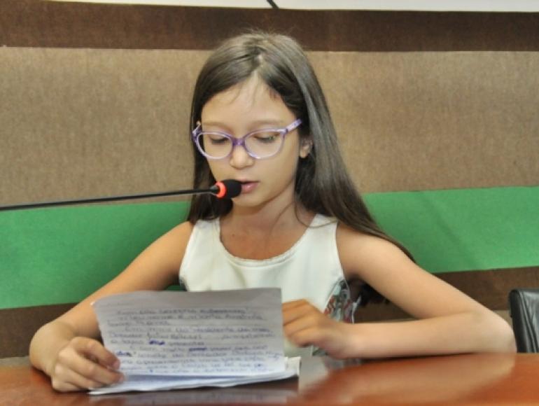 Apesar da pouca idade a estudante busca apoio para inserir o “Parlamento Mirim Cuiabano”, por isso fez uso da tribuna livre onde explanou seu projeto.