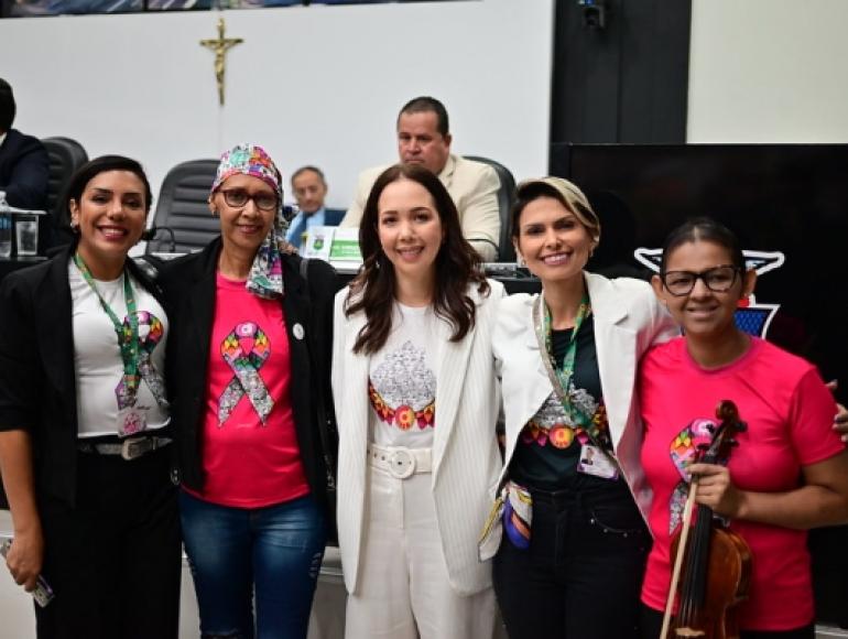 A vereadora de Cuiabá, Maysa Leão (Republicanos) convidou a presidente da Associação de Apoio aos Pacientes Oncológicos de Cuiabá (AAPOC), Janaina Santana, para o uso da Tribuna Livre desta quinta. A entidade que dedica as suas atividades a apoiar a jornada dos pacientes que possuem câncer, enfrenta desafios para atender seus pacientes. "Ninguém escolhe ter câncer, eu não escolhi. Por isso convidamos vocês a se juntarem com a gente” disse Janaína no Plenário.