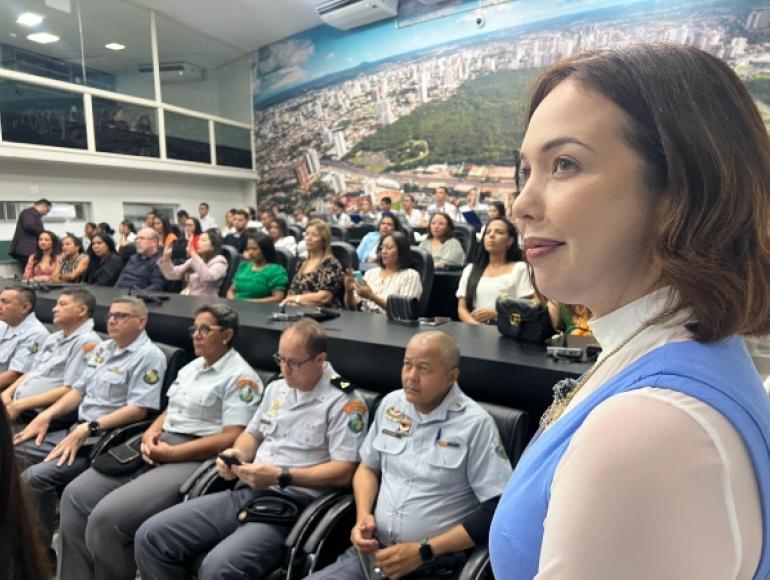 A vereadora Maysa Leão (Republicanos) homenageou em Sessão Solene nesta quarta (13) os servidores da Escola Militar Tiradentes. Com 39 anos de história, a Instituição tem como lema a disciplina e a hierarquia. Ao todo, 67 funcionários do colégio receberam moção de aplausos do Parlamento Municipal.&nbsp