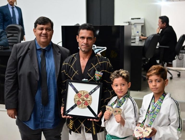 O professor e mestre de Taekwondo, Antônio Dias de Oliveira, esteve na tribuna da Câmara de Cuiabá reforçar pedido de apoio à sociedade cuiabana para que os filhos dele Teilor, 10 anos, e Heindan, 8 anos, possam disputar a Copa América de Taekwondo, em Arujá (SP), de 12 a 14 de outubro. Ele foi ao parlamento cuiabano na terça-feira (19) a convite do vereador Rogério Varanda (MDB).