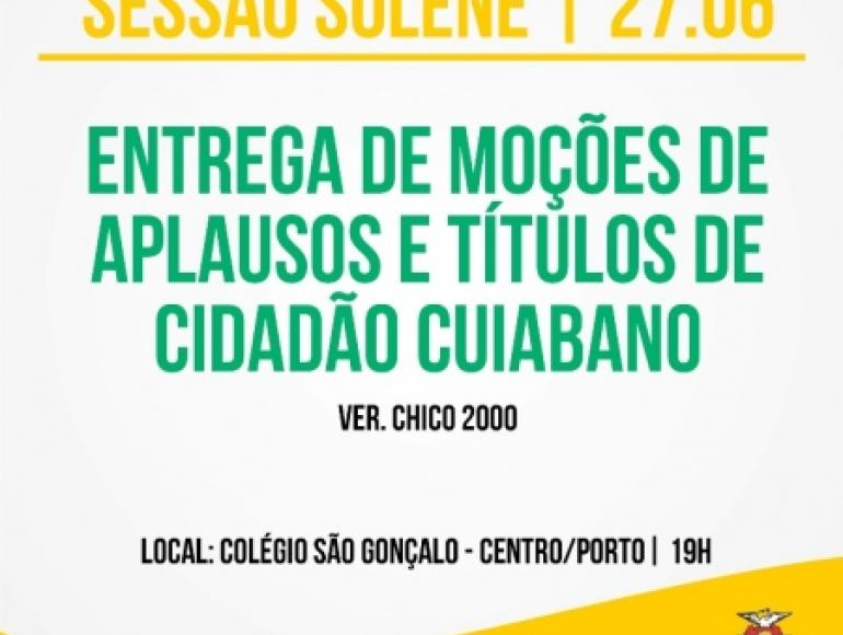O vereador Chico 2000 requereu uma Sessão Solene para a entrega de Moção de Aplausos e Títulos de Cidadão Cuiabano às personalidades que têm prestado serviços relevantes e importantes para a Capital matogrossense.&nbsp