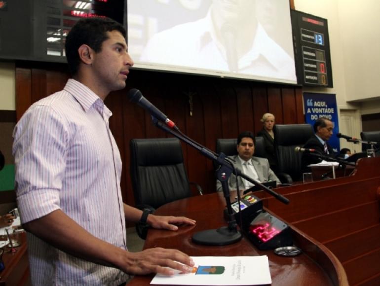 Felipe Lima durante homenagem na Câmara de Cuiabá
