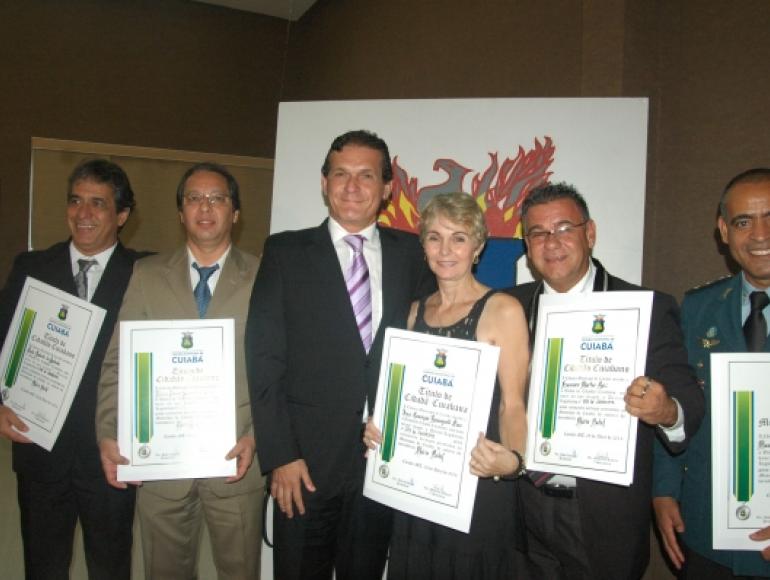 Na noite desta quarta-feira (3), o vereador Mário NadaF (PV) homenageou oito cidadãos cuiabanos em um evento promovido pelo Legislativo cuiabano no Hotel Fazenda Mato Grosso, onde participou do primeiro ato em comemoração ao aniversário de Cuiabá, que na próxima segunda-feira (8) completará 294 anos de fundação.