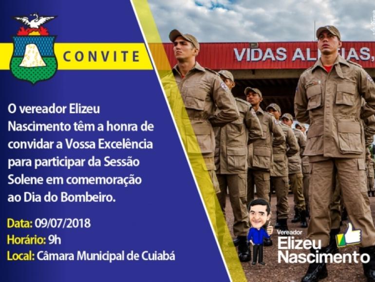 O vereador Elizeu Nascimento tem a honra de convidar a população para participar da Sessão Solene em comemoração ao Dia do Bombeiro.
