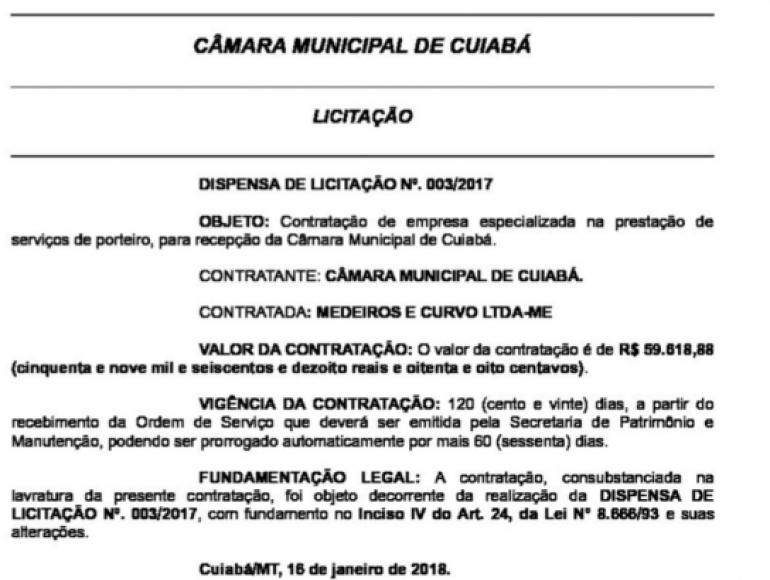 1- A Câmara Municipal de Cuiabá está contratando o serviço de porteiro e não recepcionista, como está sendo veiculado em alguns veículos de comunicação.