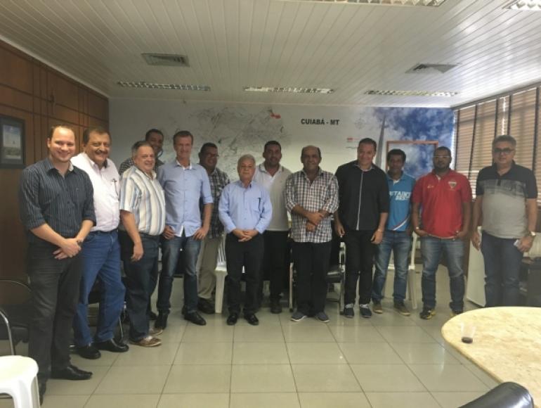 O presidente da Câmara de Cuiabá, vereador Julio Pinheiro (PTB), recebeu na manhã desta quarta-feira (02) o presidente da Federação Mato-grossense de Futebol, João Carlos Oliveira Santos e representantes clubes da Capital e de Várzea Grande. A pauta foi o estádio Eurico Gaspar Dutra, mais conhecido como Dutrinha.