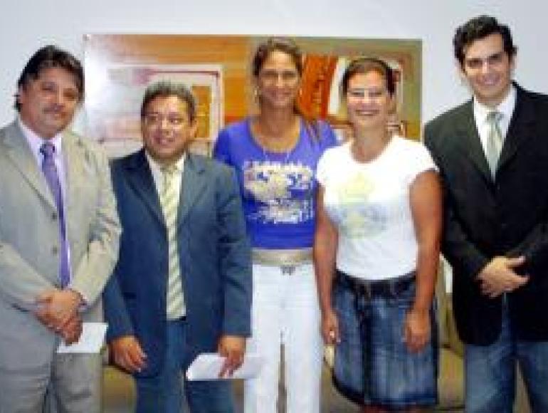 O presidente da Câmara Municipal de Cuiabá, vereador Lutero Ponce de Arruda (PMDB) juntamente com demais parlamentares da sigla na Casa, Domingos Sávio e Mário Lúcio, receberam na manhã desta terça-feira (16) a presidente do PMDB Mulher, Teté Bezerra, que convidou os parlamentares ao evento do Centro-Oeste do PMDB Mulher, na capital, durante o sábado, no Hotel Deville. Conforme Teté, peemedebistas da capital e interior de Mato Grosso, Mato Grosso do Sul, Distrito Federal e Goiás participam de uma discussão referente às futuras candidaturas a prefeituras e câmaras municipais do país. Lutero, que foi solícito quanto ao evento, destacou a importância das lideranças comunitárias locais no evento, no sentido de conscientizar as mulheres quanto à política local. “Sabemos que boa parte das iniciativas de ações sociais parte dessas lideranças”, destaca. Mário Lúcio está à frente de uma confraternização, na sexta-feira, onde reunirá as convidadas de outros estados para o Seminário, que contará com presenças como a deputada Íris Araújo, vice-presidente do PMDB Mulher Nacional e Celina Jaladi (MS). Segundo Teté, mulheres de outros partidos também foram convidadas ao evento que abordará questões constitucionais como a reserva de vagas na política, que deve ser cumprida em 30% para mulheres candidatas a cargos públicos. O Seminário é aberto à militância em geral.