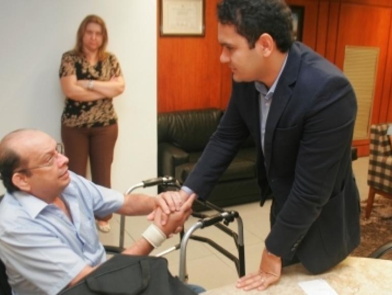 O economista Teldo Figueiredo, que luta contra uma artrose progressiva, esteve hoje (05-06) no gabinete do Legislativo em reunião com presidente da Casa de Leis, João Emanuel, PSD. Ele reivindicou da autoridade parlamentar apoio às leis que amparam os portadores de necessidades especiais, muitas vezes não respeitadas, queixou-se. Teldo disse a Emanuel que foi vítima de uma ocorrência típica das várias que outras pessoas com problemas típicos enfrentam cotidianamente na capital.