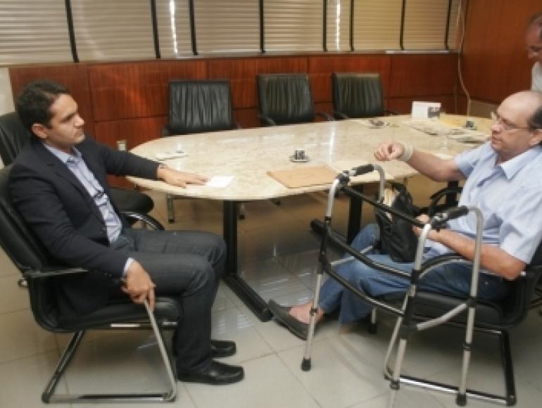 O economista Teldo Figueiredo, que luta contra uma artrose progressiva, esteve hoje (05-06) no gabinete do Legislativo em reunião com presidente da Casa de Leis, João Emanuel, PSD. Ele reivindicou da autoridade parlamentar apoio às leis que amparam os portadores de necessidades especiais, muitas vezes não respeitadas, queixou-se. Teldo disse a Emanuel que foi vítima de uma ocorrência típica das várias que outras pessoas com problemas típicos enfrentam cotidianamente na capital.
