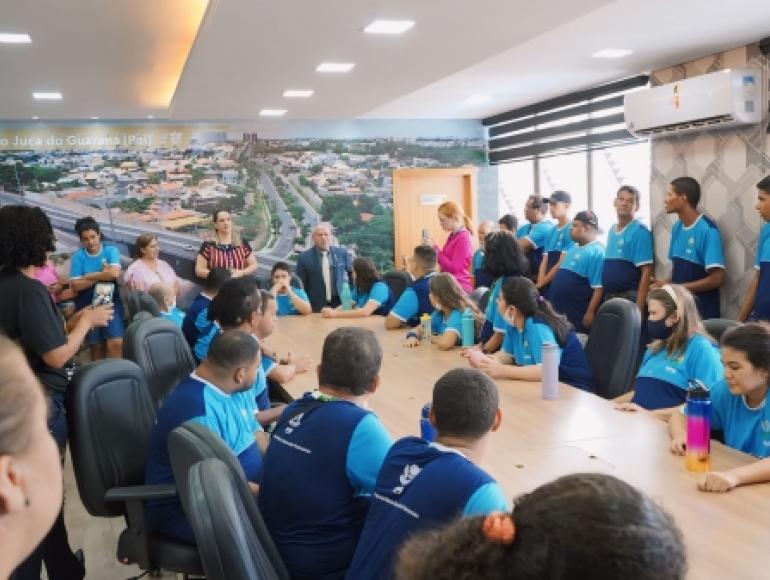 O presidente da Câmara Municipal de Cuiabá, vereador Chico 2000 (PL), recebeu nesta quinta-feira (29.02), no gabinete da presidência, 55 alunos da Associação de Pais e Amigos dos Excepcionais (APAE), para a 1ª edição do "Projeto Cuiabaninhos", de 2024.