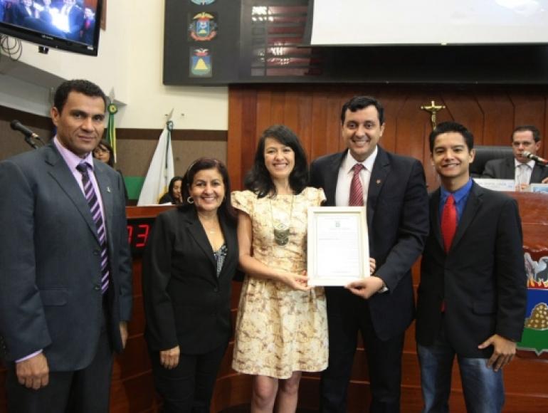 A presidente da Associação MT Mamma, Juci Ribeiro, recebeu na Câmara de Cuiabá, nesta quinta-feira (05), uma Moção de Aplausos concedida pelo vereador Allan Kardec (PT) como reconhecimento pelo trabalho realizado à frente da associação de trabalhadoras e trabalhadores voluntários sem fins lucrativos que atende a mulheres e homens com câncer de mama.