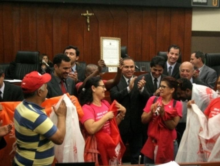 Presidente do Sintep fala no Tribuna Livre da Câmara sobre a greve Notícias / Qui, 3 Out 2013 - 09:00 ▶ ⏸ ⏹ Velocidade 0.75 Normal 1.25 1.5 1.75 2 Voz Padrão Masculina (Daniel) Feminina (Maria) Volume Otmar de Oliveira Henrique e o Sintep foram homenageados com Moção de Aplausos Compartilhar Imprimir Imprimir