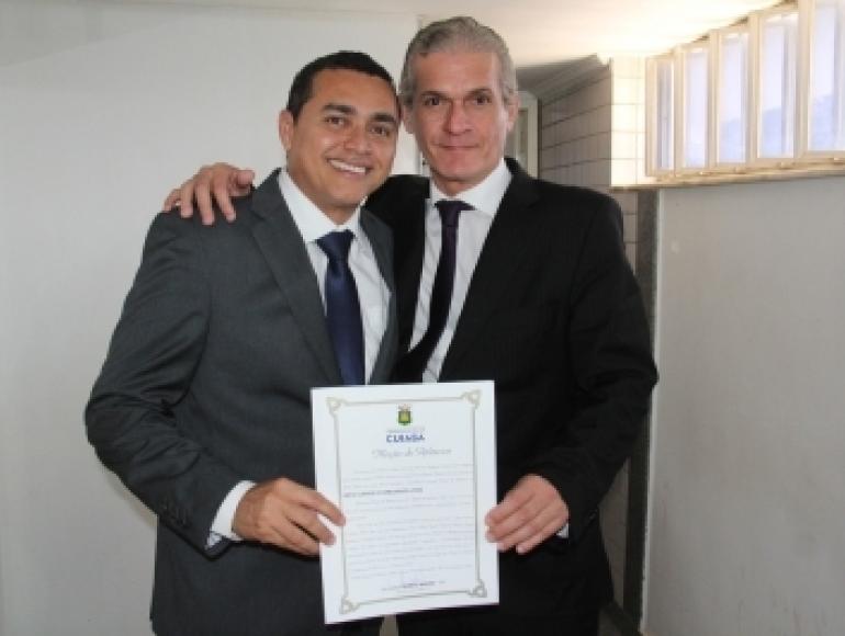 Vereador Mario Nadaf (PV) entregando moção de aplausos.