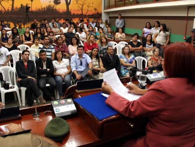 A Sessão Solene realizada no Plenário da Câmara de Cuiabá, nesta sexta-feira (30), foi marcada por muita emoção e sensibilidade. A primeira secretária, vereadora Lueci Ramos entregou moções de aplausos a 121 pessoas entre parceiros, monitores, coordenadores e secretários que contribuíram com o sucesso do Programa de Erradicação do Trabalho Infantil (Peti), entre os anos de 2005 a 2011, em Cuiabá.
