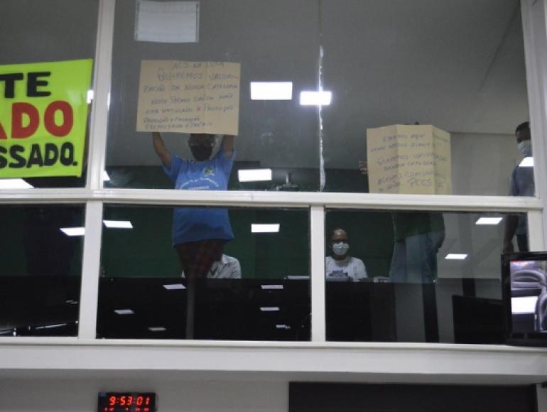 Agentes comunitários de saúde protestaram nesta quinta-feira (9), em frente a Câmara dos Vereadores de Cuiabá, contra a redução do Prêmio Saúde que era de R$ 170 e passou para R$100. A diminuição aconteceu após o Ministério Público apontar irregularidades no pagamento do benefício. O vereador Dr. Luiz Fernando (Republicanos) explicou que a maioria dos parlamentares está apoiando a categoria, mas que o benefício ainda não pode ser votado no Legislativo Municipal, pois se encontra em avaliação no Tribunal de Contas do Estado (TCE-MT).