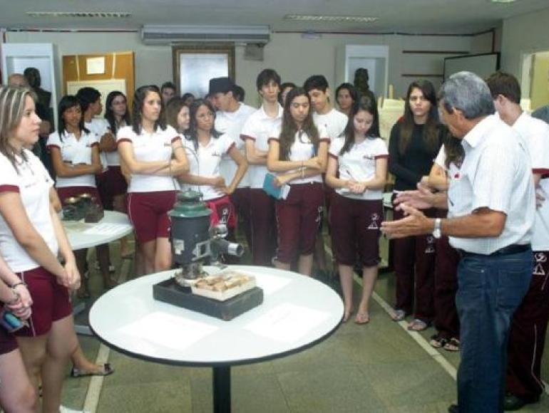 Jovens em palestra no saguão da Câmara de Cuiabá