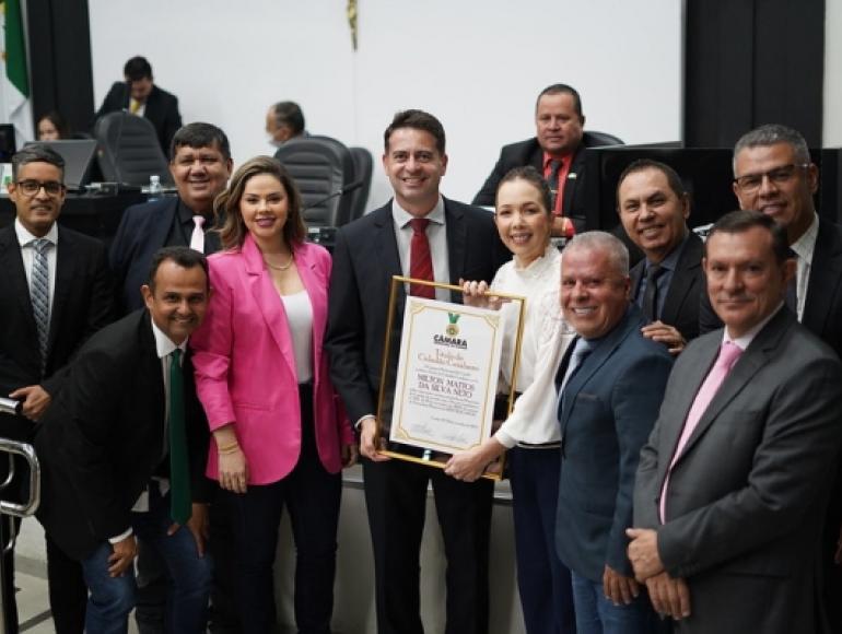 O promotor Milton Mattos da Silveira Neto recebeu título de cidadão cuiabano concedido pela Câmara Municipal de Cuiabá na sessão ordinária de terça-feira (11.06). Ele foi convidado para usar a tribuna livre, onde falou sobre sua atuação na área da saúde, a convite da vereadora Maysa Leão (Republicanos).