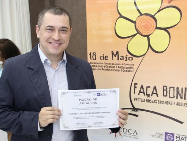 O vereador Marcelo Bussiki (PSB) foi homenageado pelo&nbsp Conselho Estadual de Defesa dos Direitos da Criança e Adolescente (Cedca-MT)&nbsp por sua atuação em prol dos menores em Cuiabá. A homenagem ocorreu em evento na noite dessa segunda-feira (12), ocasião em que o conselho completou 28 anos de existência.