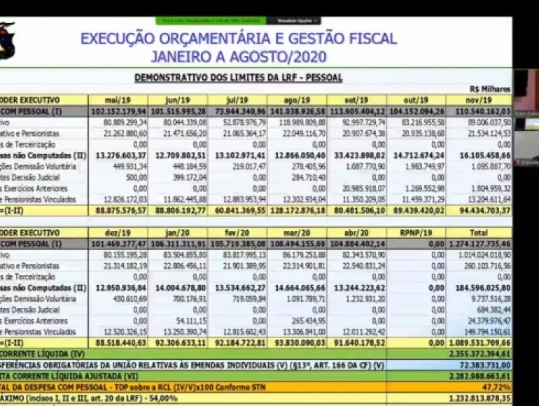 Na ocasião, o secretário apresentou o Relatório Resumido de Execução Orçamentária e Gestão Fiscal do 2º Quadrimestre, compreendendo o período de janeiro a agosto de 2020, quando se contabilizou uma frustração da receita no valor de R$ 79 Milhões.