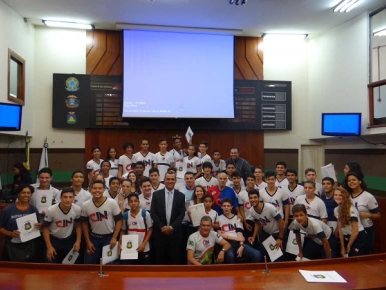 Aconteceu na manhã desta sexta-feira (27), na Câmara de Cuiabá, a Sessão Solene de entrega de 98 Moções de Aplausos aos atletas do Colégio Isaac Newton (CIN), que foram medalhistas nos Campeonatos Estudantis no biênio 2014/2015 e aos professores/técnicos da Academia mantida pela instituição.