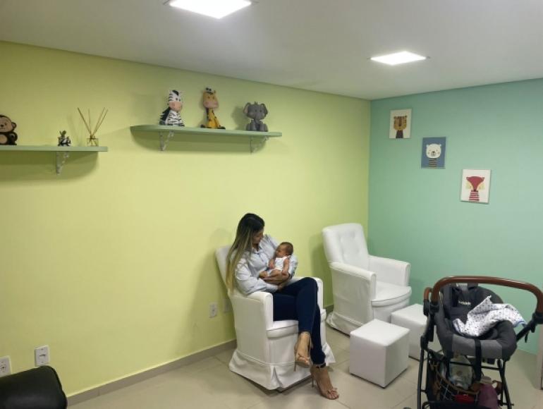 O projeto contempla um grande espaço climatizado e decorado. O local conta ainda com geladeira, micro-ondas, sofás e poltronas. Já os fraldários foram instalados nos banheiros femininos e masculinos da Casa de Leis.