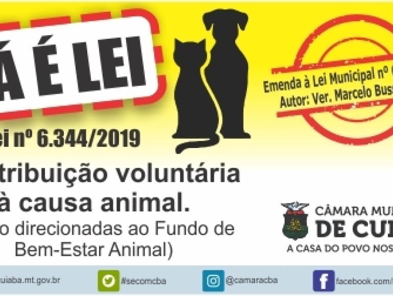 O prefeito de Cuiabá Emanuel Pinheiro (MDB) sancionou a lei n° 6.344/2019, que autoriza a contribuição voluntária à causa animal, por meio das contas de água e energia.&nbsp A contribuição é fruto da emenda parlamentar de autoria do vereador Marcelo Bussiki (PSB), apresentada ao projeto do Fundo do Bem-Estar Animal, idealizado pelo vereador e cuja criação também foi sancionada.