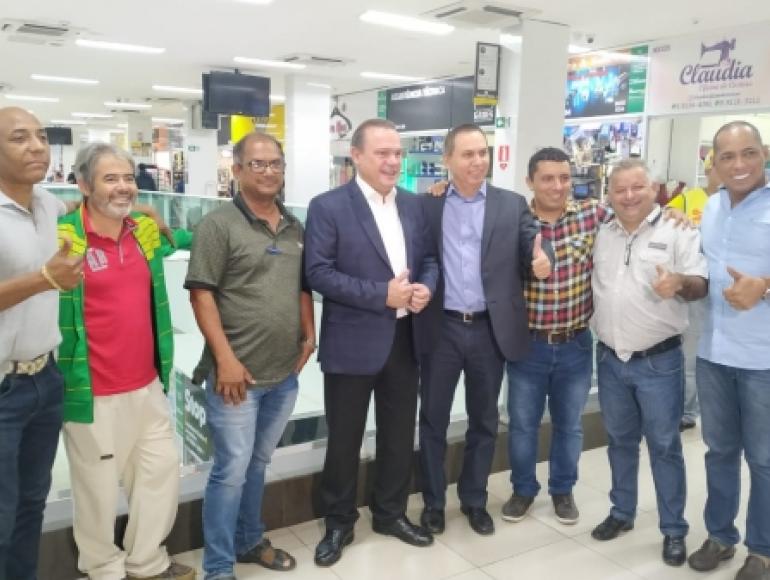 “É uma satisfação receber aqui no Shopping Popular o senador Wellington Fagundes. Falamos de muitas demandas da nossa Capital e também do Shopping Popular, buscando aquilo que sonhamos, que é o respeito a toda a classe política”, pontuou o presidente da Câmara Municipal de Cuiabá, Misael Galvão (PSB).