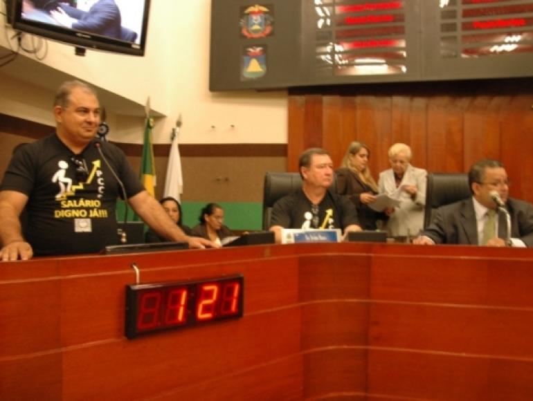 O presidente do Sindicado dos Servidores Municipais de Cuiabá, Jaime Metelo, externou nesta quinta-feira (24/11), na tribuna da Câmara de Cuiabá, sua preocupação quando ao Plano de Cargos, Carreiras e Salários (PCCS), dos servidores da Prefeitura Municipal. Metelo explicou que cerca de 260 servidores da saúde e administração, sem categoria específica, fragmentada em nível superior, estão esquecidas pelo Executivo.