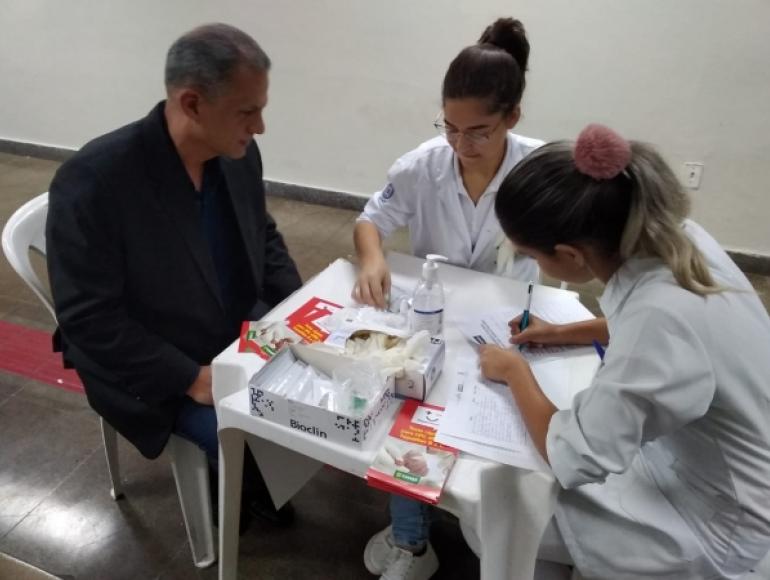 Por meio de uma parceria entre o Serviço de Assistência Especializada (SAE) da Prefeitura de Cuiabá e o grupo do curso de enfermagem da UFMT, a Câmara Municipal disponibilizou na manhã desta quinta-feira (01) diversos exames, na modalidade Teste Rápido, para que servidores e público em geral pudessem averiguar melhor a saúde.