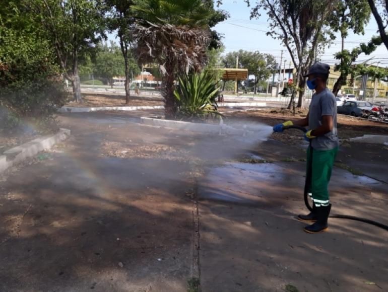 Um dos lugares dedetizados foi a Praça Gonçalo de Almeida Botelho e a quadra da antiga Escola Estadual Maria Eliza Bocaiúva.