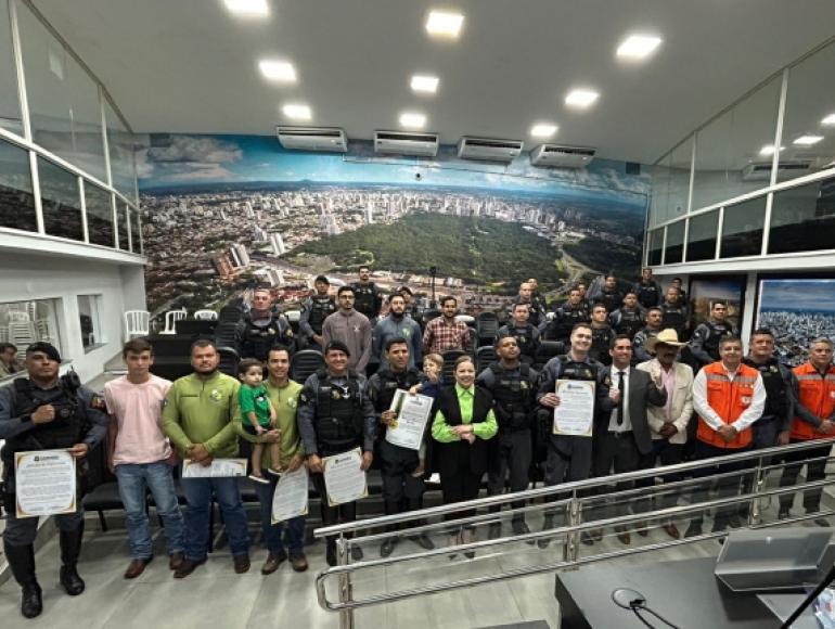 Os vereadores Paula Calil e Tenente-Coronel Dias realizaram, na manhã desta segunda-feira (14), uma sessão solene para entrega de moções de aplauso em homenagem à Cavalaria da Polícia Militar do Estado de Mato Grosso.