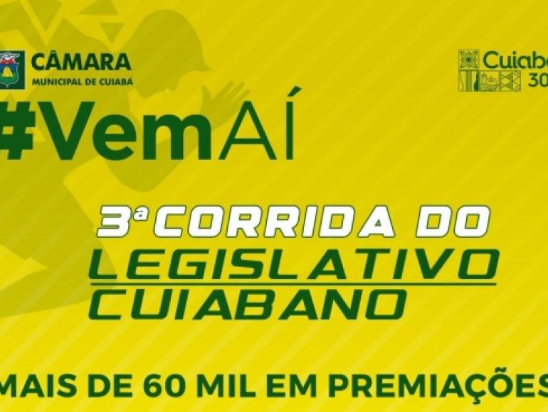 As inscrições para a 3ª Corrida do Legislativo Cuiabano seguem abertas. O evento foi remarcado para o dia 15 de maio (domingo. A largada segue agendada para ser em frente à Câmara Municipal de Cuiabá, sendo uma realização da Associação Artistas Compositores e Produtores (ACMP) e organizada pela Sem Limites Eventos Esportivos, junto com o vereador Chico 2000 (PL).