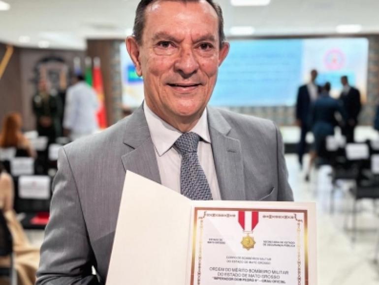 A honraria é destinada a autoridades e personalidades que, ao longo de sua trajetória, prestaram relevantes serviços à corporação e à sociedade mato-grossense. O reconhecimento foi concedido pelo Comandante-Geral do CBMMT, coronel Flávio Glédson Vieira Bezerra.