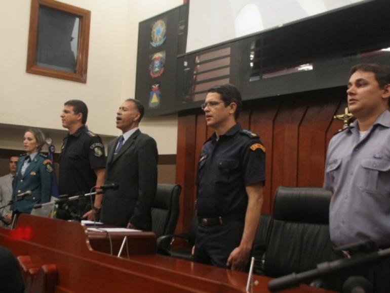 Na manhã desta sexta-feira (04-10) à Câmara Municipal de Cuiabá homenageou com Moções de Aplausos, o corpo da Polícia Militar do Estado de Mato Grosso. O requerente da honraria foi o vereador Primo Derlei (PTdoB), que presidiu a sessão solene, e ressaltou a importância do trabalho de segurança e social realizado na Região Oeste da Capital.