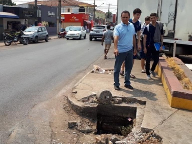 Ele citou como exemplo uma boca de lobo existente na Rua Jornalista Alves de Oliveira no  bairro Cidade Alta, onde por falta de manutenção está com a tampa quebrada há mais de quatro meses, que devido a situação está entupida,  exalando forte odor de esgoto e já provocou acidentes, onde pessoas já caíram devido a falta da tampa.