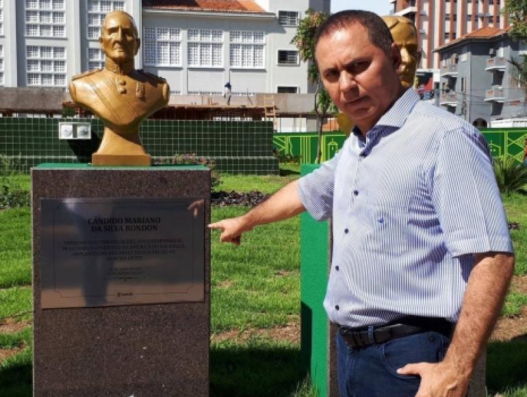 Vereador Dilemário solicita que prefeitura corrija erro em placa do busto de Rondon