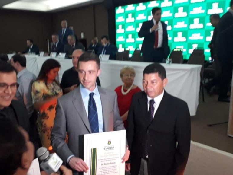 Na noite de ontem (9), a Câmara de Cuiabá realizou sessão solene para entrega de títulos de Cidadão Cuiabano àqueles que contribuíram significativamente com a capital mato-grossense ao longo dos anos. A solenidade foi prestigiada por centenas de pessoas, entre autoridades municipais, estaduais,federais e artistas que compõem o setor cultural e folclórico do município. O foco das apresentações teve abordagem comemorativa voltada ao tricentenário do município. Um dos pontos altos da cerimônia ficou por conta da apresentação do grupo folclórico Flor Ribeirinha, sob o comando musical de Edmilson Maciel, que discorreu poeticamente sob a trajetória evolutiva do "torrão cuiabano", segundo acentuou. A dupla Nico & Lau encerrou o evento sob aplausos dos participantes.
