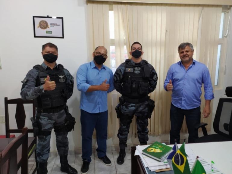 O vereador Eduardo Magalhães (Republicanos), se reuniu na segunda-feira (08) com o vice-prefeito de Cuiabá, José Stopa, Tenente coronel Wesnen Sandro Rodrigues, e Tenente Flávio Barbosa da Companhia Raio Independente.