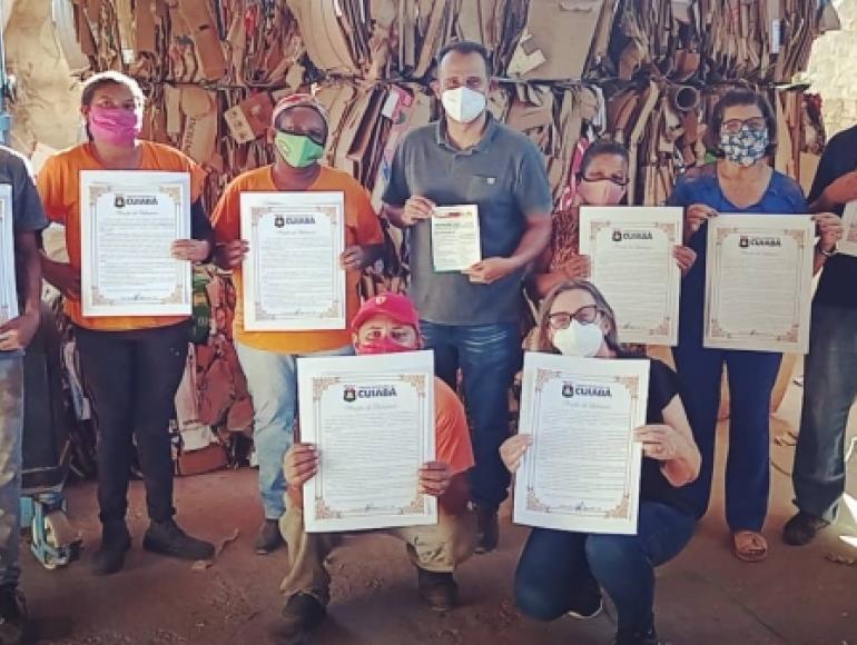 O vereador Sargento Joelson (SD), entregou na última sexta-feira (02.06), moção de aplausos aos trabalhadores da Cooperativa Alternativa de Reciclagem e Preservação do Meio Ambiente (COOREPAM), pela ação que vem desenvolvendo em favor do meio ambiente, com a coleta seletiva do lixo em Cuiabá, e também pelo fato de terem virado notícia nacional por uma ação de devolução de dinheiro que foi encontrado durante reciclagem de resíduos de uma agência bancária, o qual tratou como louvável a atitude dos cooperados.