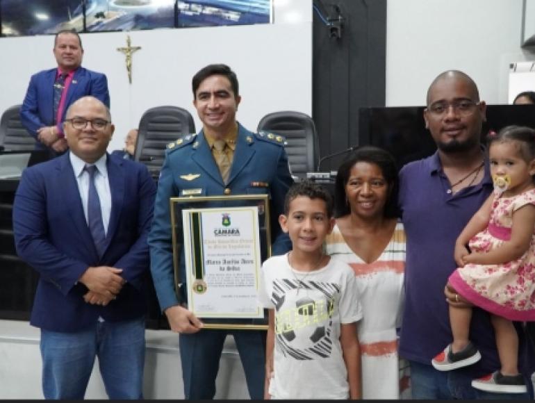 “Agradeço ao vereador Eduardo e toda a equipe pela homenagem. Fui instrumento de Deus, e tive tranquilidade para fazer a manobra Heimlich, e as vias respiratórias da criança foram desobstruídas”, afirma Coronel Aires.