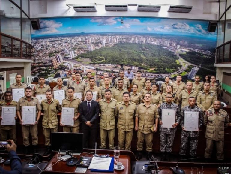 O Corpo de Bombeiros Militar de Mato Grosso foi homenageado durante uma sessão solene, realizada nesta quarta-feira (03.07), no plenário da Câmara Municipal de Vereadores de Cuiabá. O vereador Diego Guimarães (Progressistas) concedeu moção de aplauso pelo heroísmo, bravura e serviços prestados pelos profissionais que participaram de missões humanitárias em Brumadinho (Minas Gerais) e Moçambique.