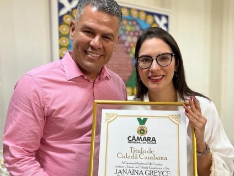 Janaina que é nascida no município de Juara, ainda não havia sido agraciada com essa honraria e se emocionou ao receber o título. Ela reside na capital desde os seis anos e seus três filhos são cuiabanos. Nas últimas eleições ela foi à terceira deputada com maior votação em Cuiabá.