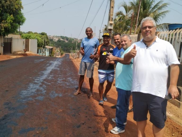 Os presidente dos bairros Dr Fábio I e II, Jucemar e Neno acompanharam a vistoria. Eles andaram pela Rua Botafogo que já está em andamento com a malha asfáltica, assim como no Bairro João Bosco Pinheiro.