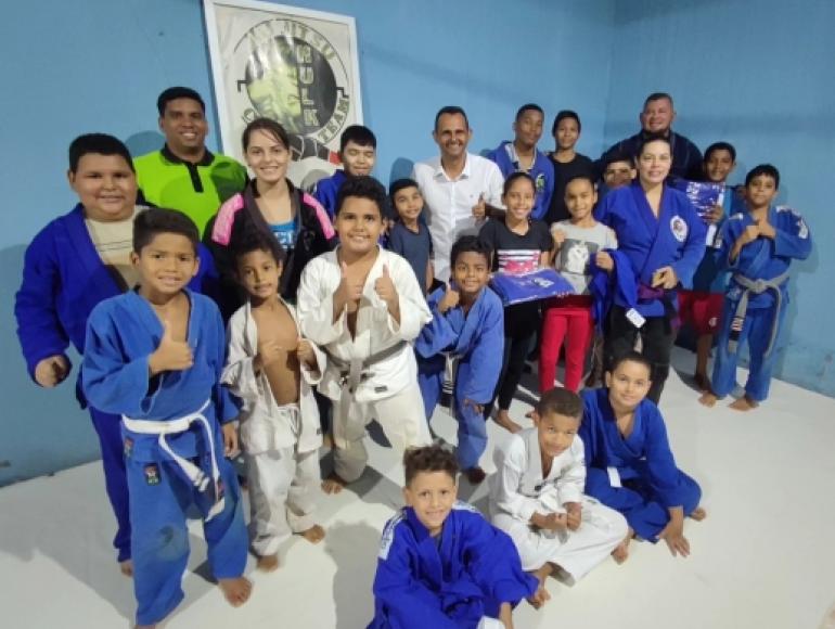 Dedicado às práticas esportivas, o vereador Sargento Joelson (PSB), foi com sua família até a residência do casal onde acontece o projeto e entregou com a liderança do bairro Islan Júnior, cinco kimono completo para doar aos alunos mais carentes do projeto.&nbsp