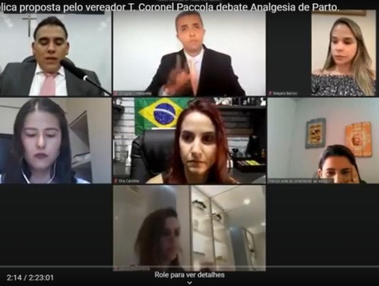 Médicos Ginecologistas, Obstetras, Anestesistas, Dermatologistas, Enfermeiros, Fisioterapeutas, Doulas e Mães, deixaram seu depoimento durante a realização da primeira audiência pública requerida pelo vereador T. Coronel Paccola (Cidadania) para discutir o uso de analgesia em partos humanizados.