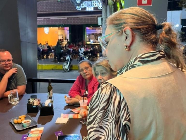 A presidente da Câmara Municipal de Cuiabá, vereadora Paula Calil (PL), visitou, na noite desta quinta-feira (01), estabelecimentos comerciais nas regiões da Praça Popular e Jardim Cuiabá para apresentar o projeto de lei de sua autoria: o protocolo “Cuiabá Protege Mulheres”.