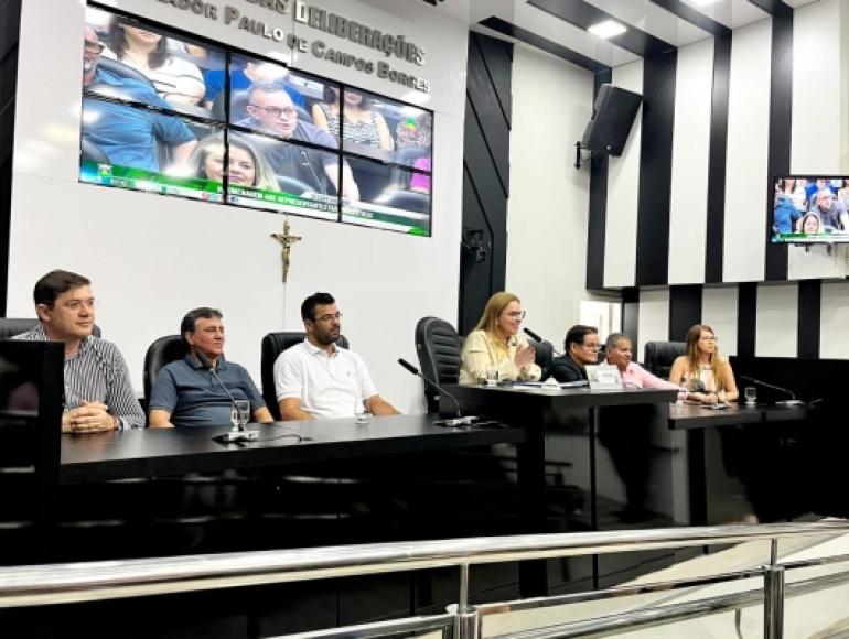 A presidente da Câmara Municipal de Cuiabá, vereadora Paula Calil (PL), concedeu, na noite de quinta-feira (2), Moção de Aplausos a profissionais e representantes do segmento farmacêutico da capital.
